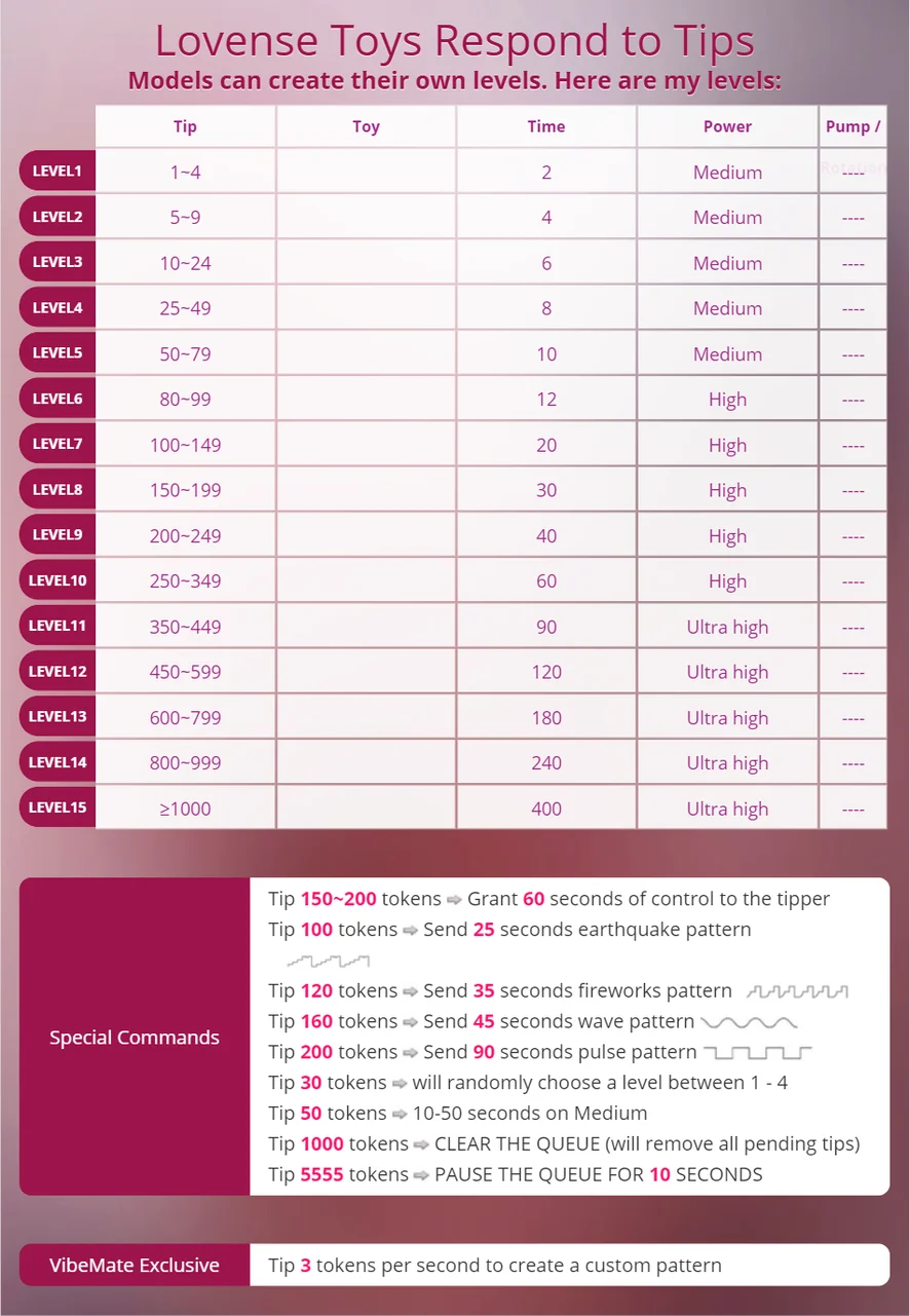 Kulum, Tarian Erotik, Main jari, Melancap dengan kaki, Lancap Menggunakan Tangan, Kulit, Alat Permainan Seks, Tampar Punggung, Memasak, Menayang Badan, Korset, Hisap Sedalam Mungkin, Sembang Lucah, Fetisy Kaki, Arahan Lancap, Alat Permainan Puting, Orgasma, Tarian Bogel, Separuh Bogel, Mandi, Gaya Berkuda, Dildo atau Penggetar, Goyang Jongket, Seks Tetek, Pancut, Alat Pakai, Main Peranan, Pertunjukan Minyak, Perempuan Simpanan, Urut, Penghinaan, Tumit tinggi, Gaya Anjing, Menduakan, Menunjukkan Lurah Faraj, Peragaan Busana, Penilaian Zakar
